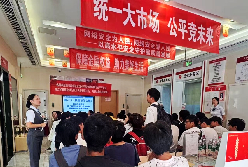 当青春的求知欲与金融业的严谨相碰撞,一堂别开生面的金融职业见习课在浙江民泰商业银行四川天府新区支行徐徐展开。近日,四川邮电职业技术学院金融专业的学子们深入了四川天府新区支行营业网点,沉浸式体验真实业务场景、参与反诈实操训练,在知行合一中完成从校园理论到社会实践的衔接,更筑牢了防范诈骗和理性消费的思想根基。